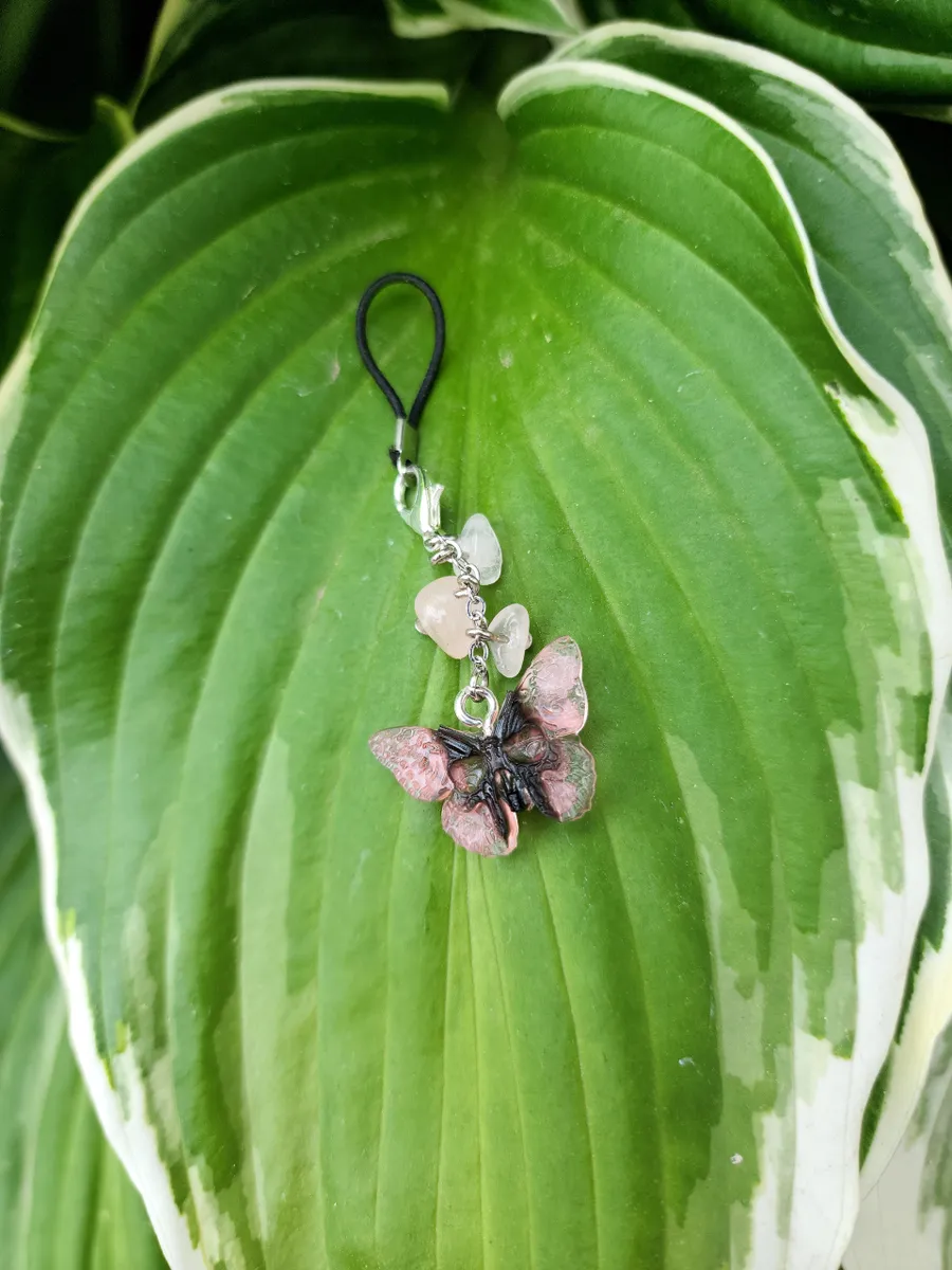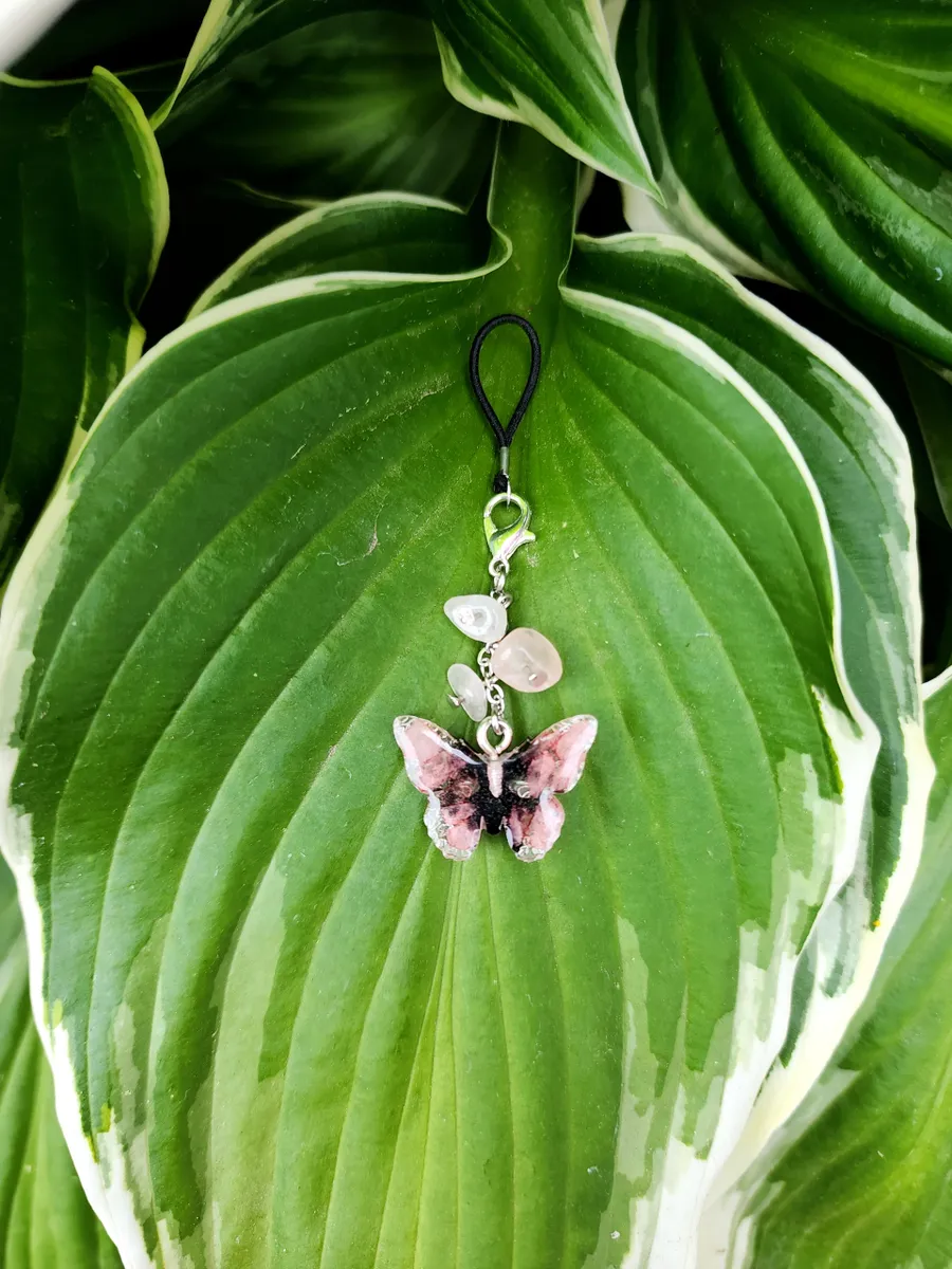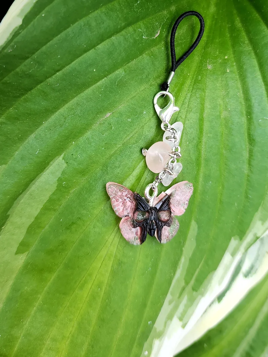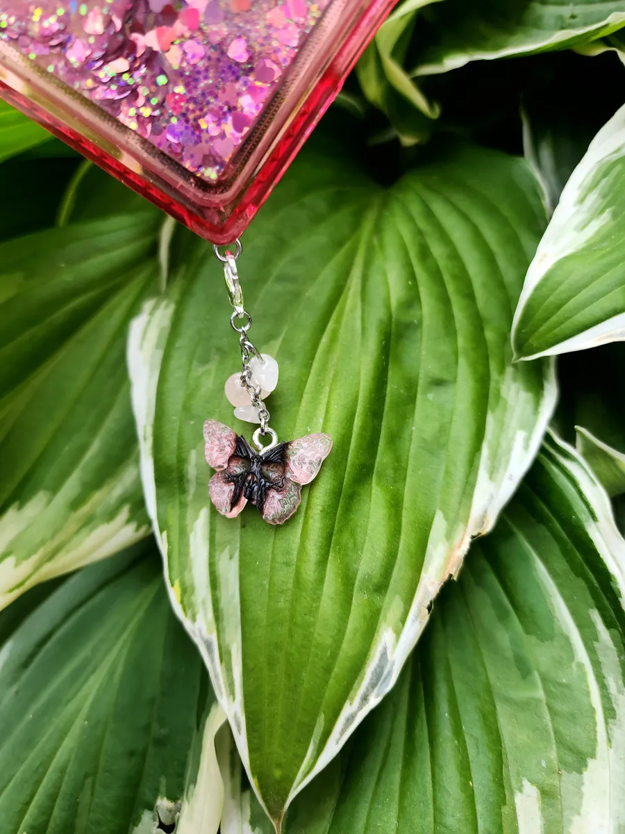 In summary, the Rose Quartz Phone Charm with Skull Butterfly design is the perfect accessory for your phone. It is expertly crafted, visually stunning, and adds a touch of personality!