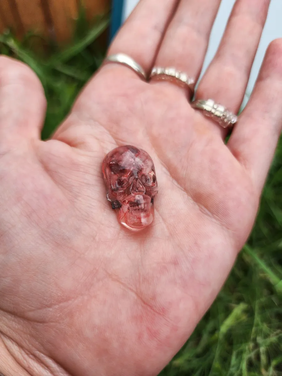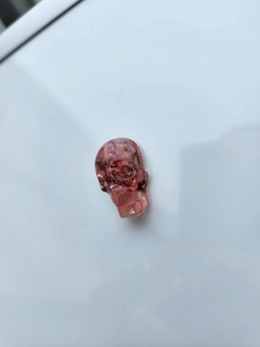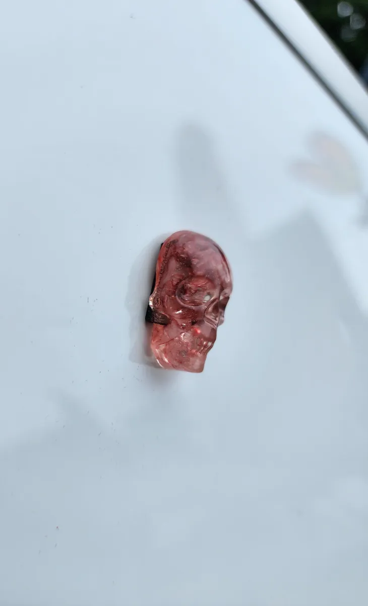 Introducing our stunning Rose Quartz Skull Magnet! This unique and eye-catching magnet is perfect for adding a touch of whimsy to any space. Made of high-quality pink Rose Quartz stones and , this skull magnet is not only a functional way to hold up your important notes and reminders, but also a beautiful piece of art in its own right. The intricate details and vibrant color make this magnet a must-have for any skull enthusiast or lover of all things quirky and fun. Add a pop of personality to your refrigerator or magnetic board with our Rose Quartz Skull Magnet today!