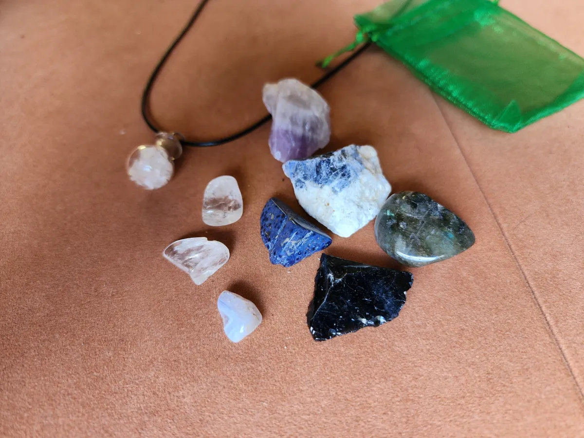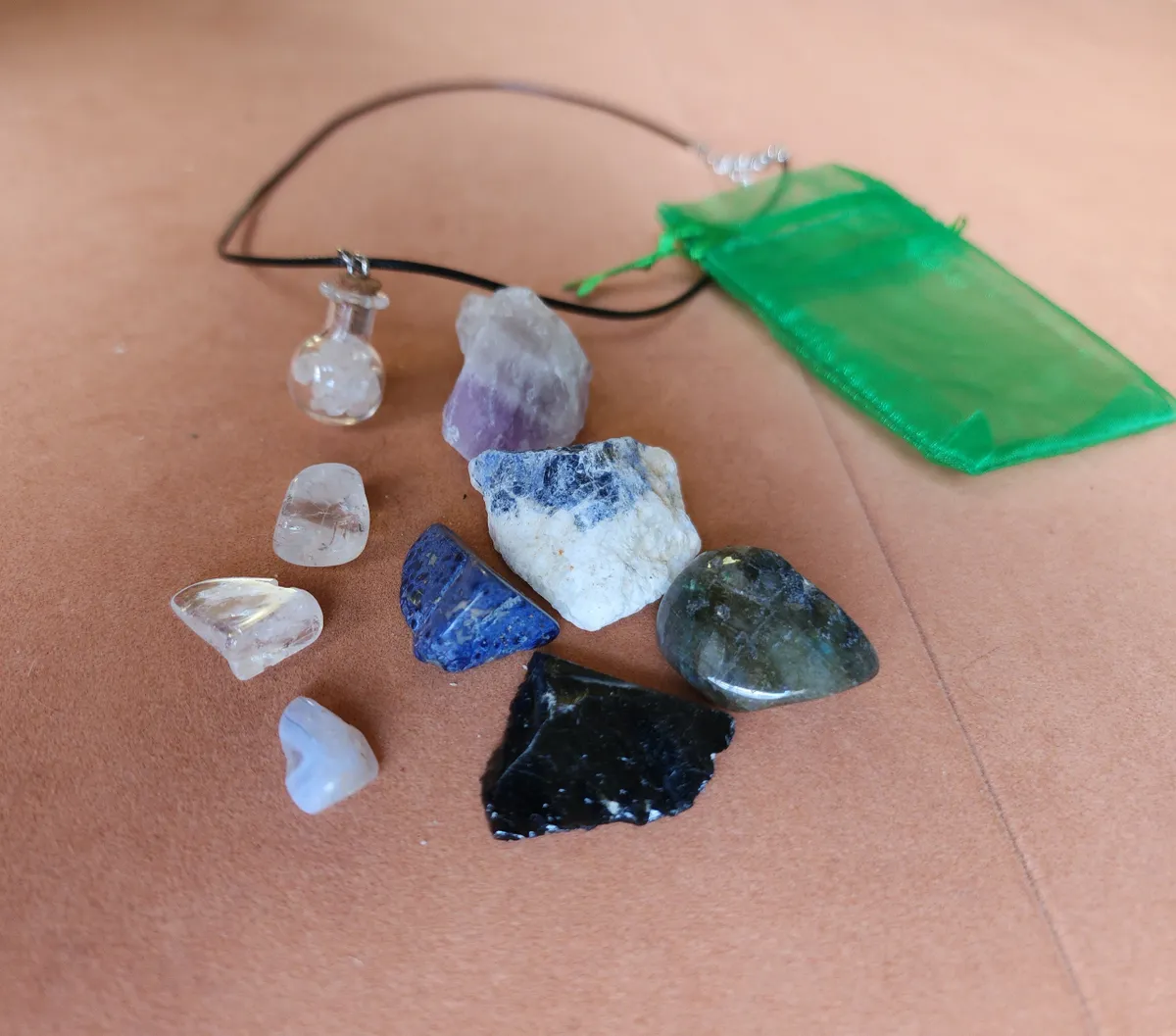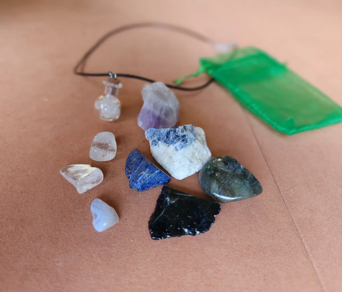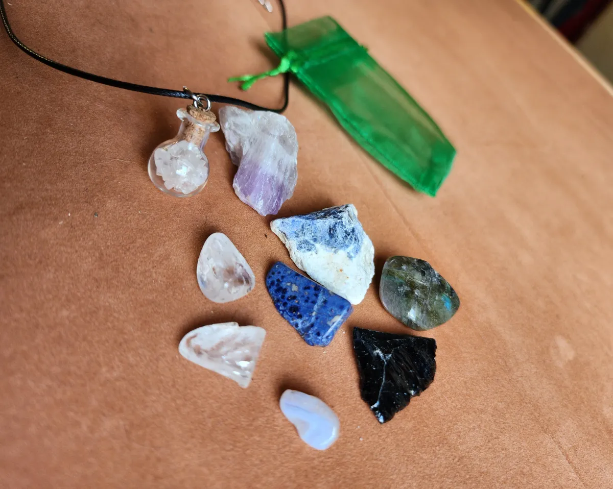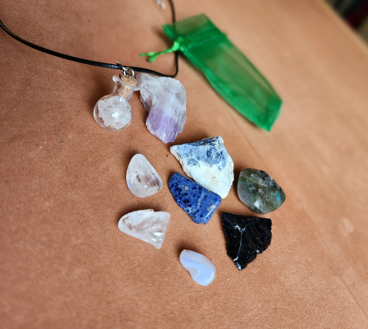 Introducing the Sagittarius Crystal Bag, the ultimate celestial accessory that perfectly aligns with your zodiac vibes! This Crystal Bag isn’t just any ordinary bag; it’s a captivating masterpiece crafted with the stars in mind. Adorned with an array of enchanting Clear Quartz stones, this necklace is a stunning cosmic medley that will leave you starry-eyed. Whether you’re a Sagittarius seeking to enhance your wanderlust or simply a crystal enthusiast, this bag is your gateway to celestial wonders. And let’s not forget the stones picked for a Sagittarius including raw and tumbled Sodalite, Obsidian, Labradorite, Amethyst, a small piece of Blue Lace Agate and Clear Quartz chips, ready to rock the universe with style!