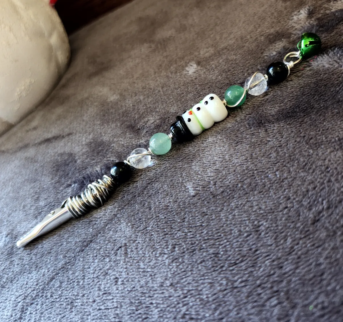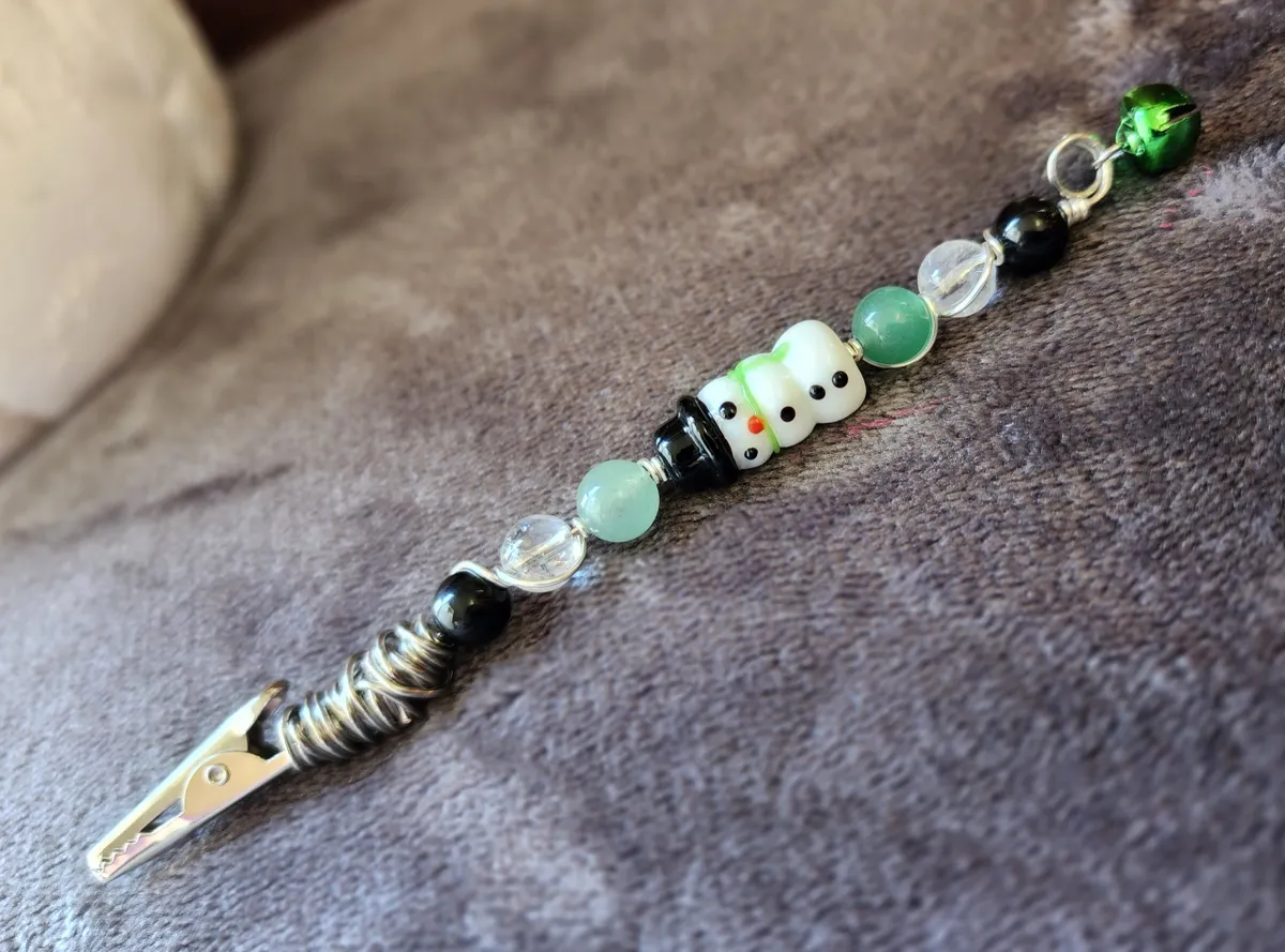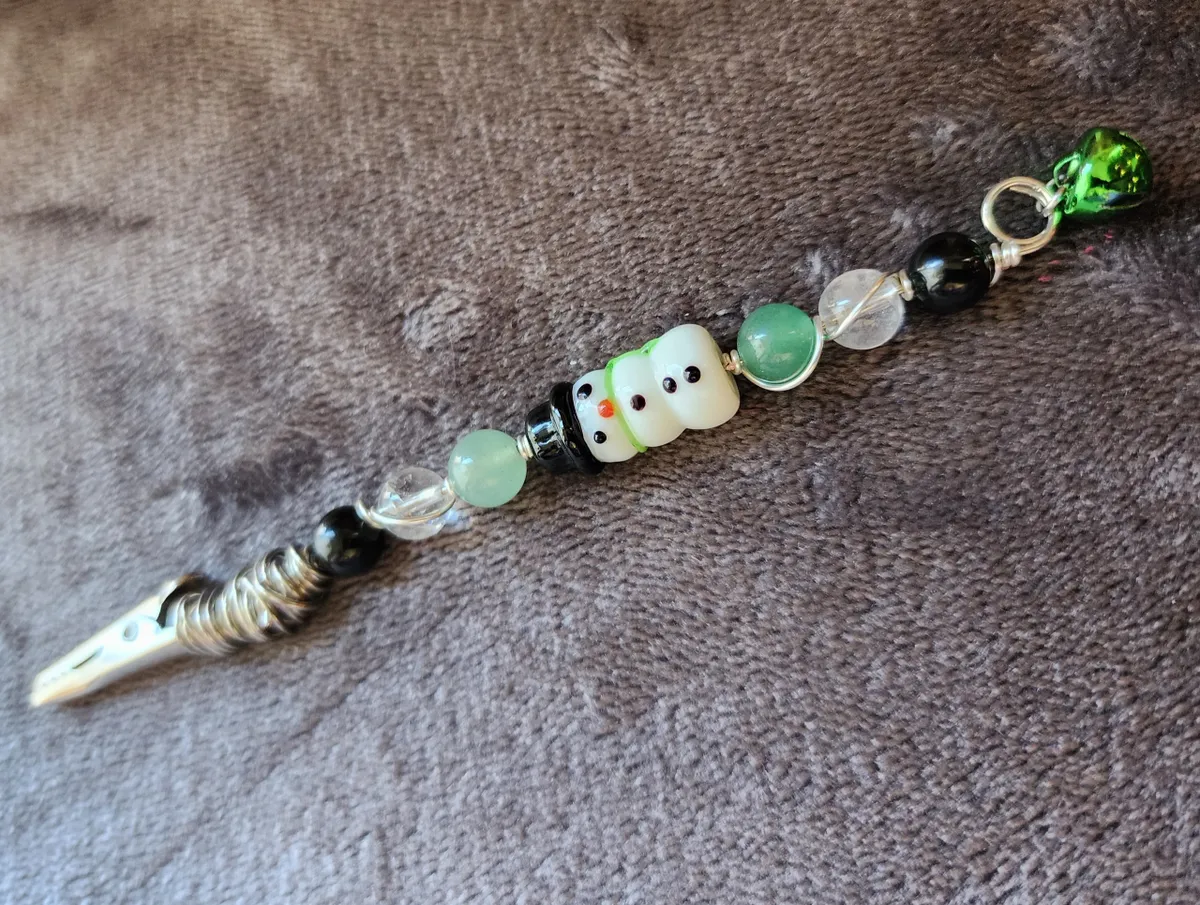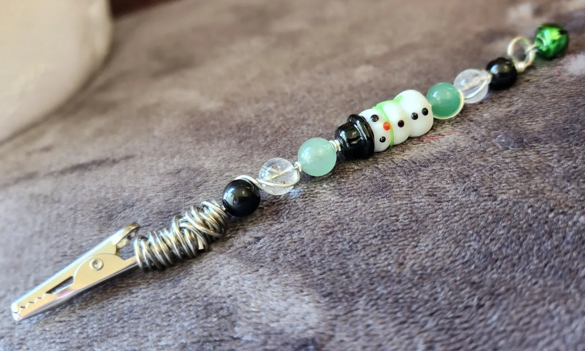 Introducing our Wire Wrapped Snowman Roach Clips with Black Tourmaline, Clear Quartz, and Green Aventurine! Looking for a quirky and stylish way to keep your smokes fresh and secure? Look no further! These adorable roach clips are perfect for any occasion, from chilling at home to hitting the slopes. Each clip features a unique combination of black tourmaline, clear quartz, and green aventurine beads, adding a touch of natural beauty to your smoking experience. These clips are not just functional but also visually appealing. Get ready to clip and puff with flair! Perfect for craft enthusiasts and smoking connoisseurs alike.