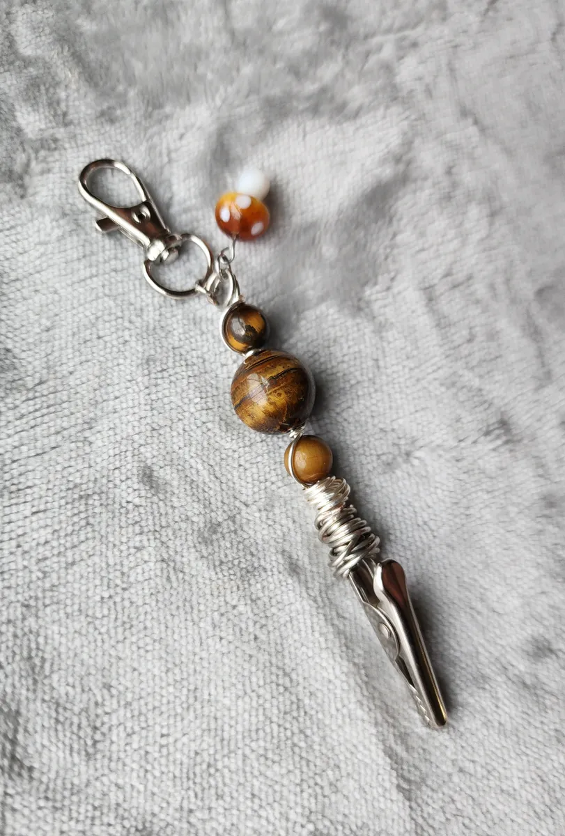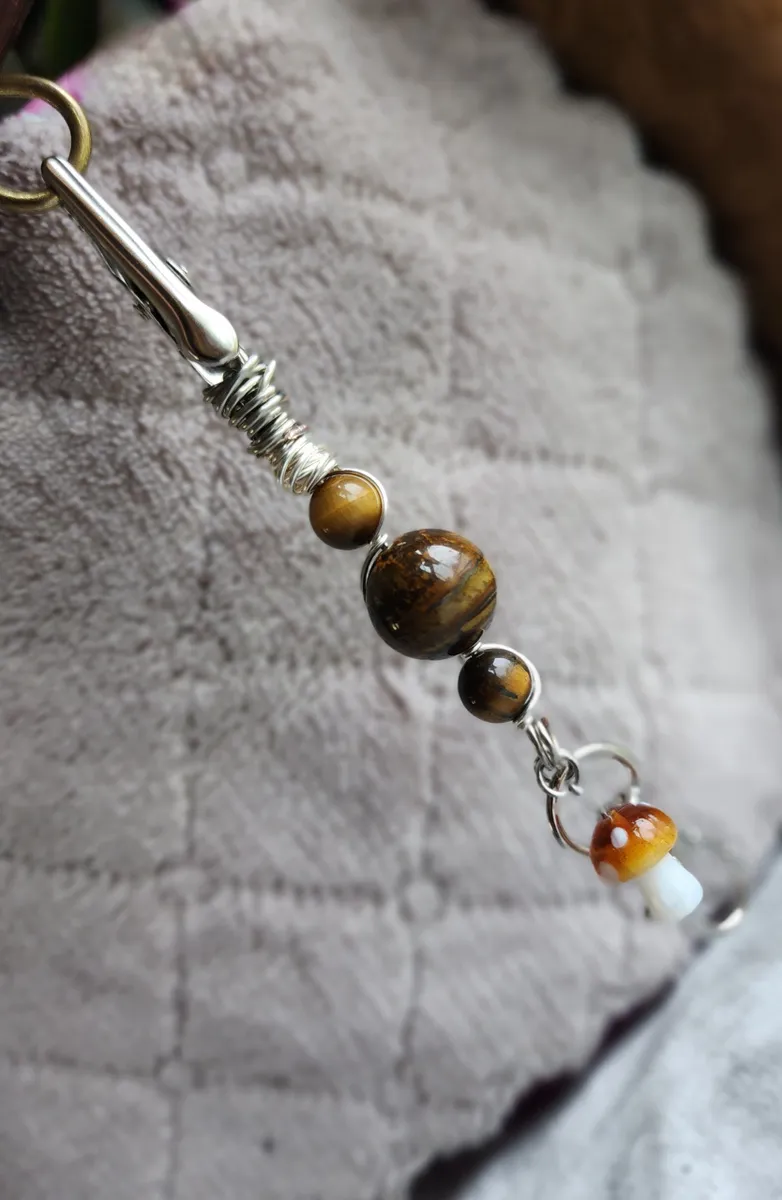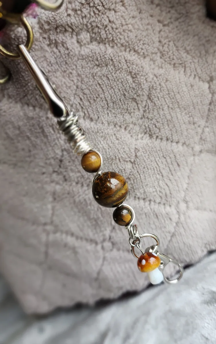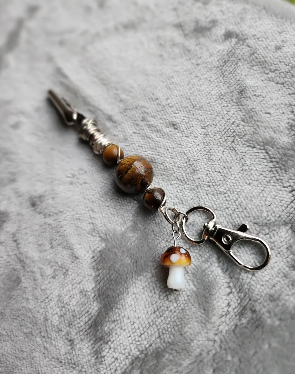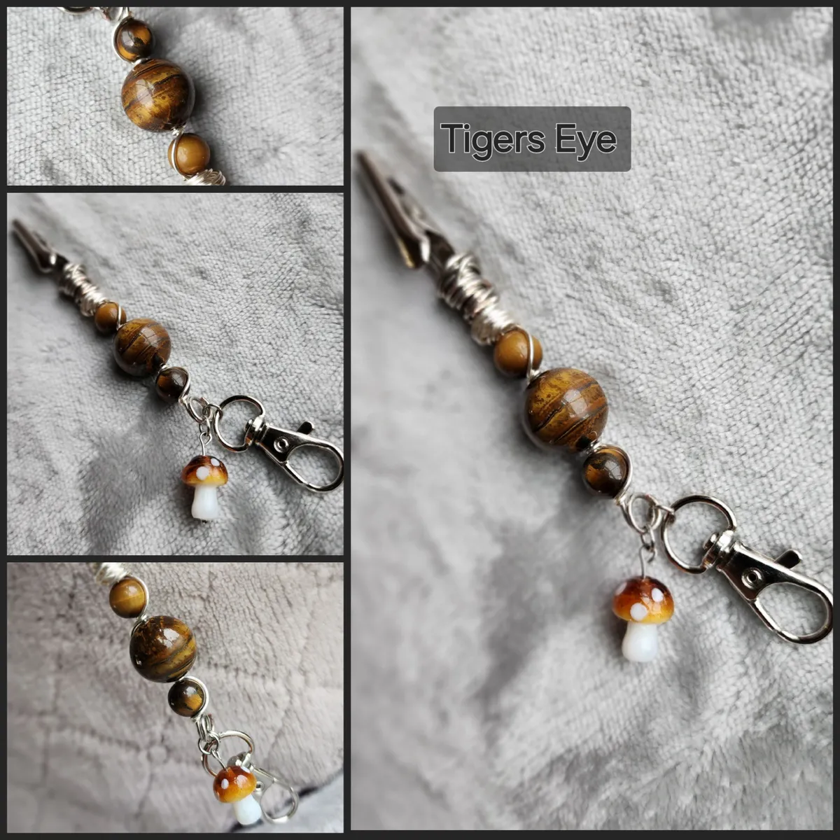 Introducing our wild and whimsical Tigers Eye Mini Roach Clips and Keychain with Mushroom Charm! This little gem is here to keep your joints secure and your style on point. Crafted with love, this keychain boasts gorgeous tiger’s eye beads that radiate strength and confidence, while the trusty clip ensures your tokes stay intact. And let’s not forget about the adorable mushroom charm – a nod to Mother Nature’s magical creations. Whether you’re a seasoned smoker or a lover of unique accessories, our Tigers Eye Mini Roach Clips and Keychain with Mushroom Charm will add a touch of charm and functionality to your everyday adventures. Get ready to turn heads and light up in style!