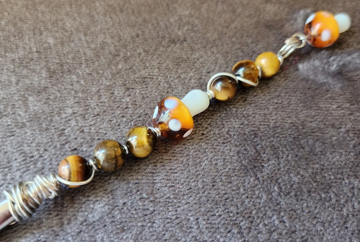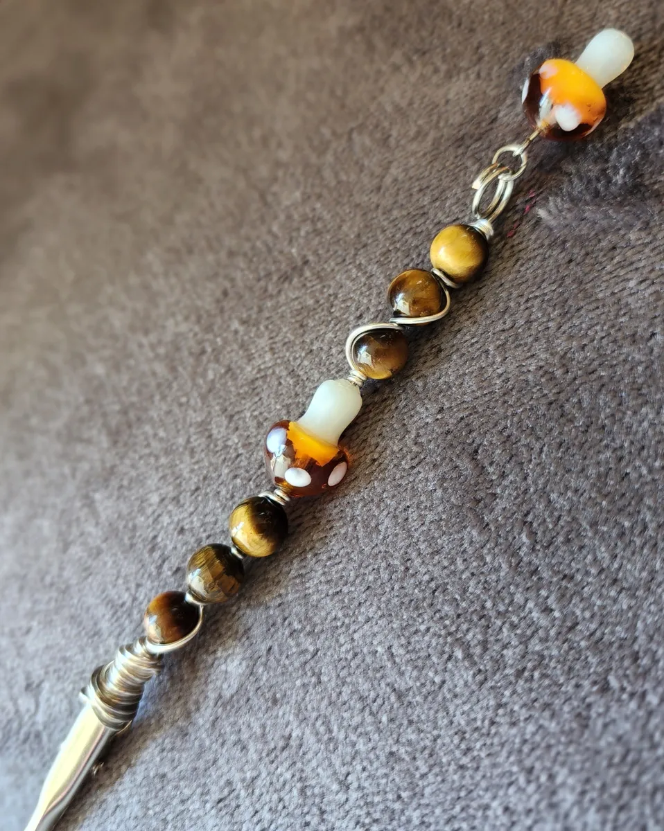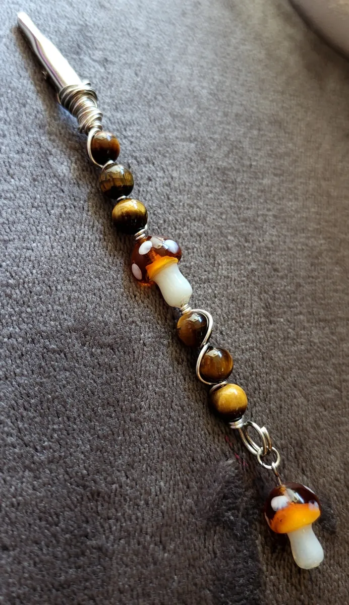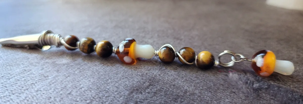 Introducing our captivating Tigers Eye Roach Clips with Mushroom Charms! These stylish and functional accessories will elevate your smoking experience to new heights. Crafted with meticulous attention to detail, our roach clips feature genuine Tigers Eye stones known for their mesmerizing golden hues and protective energies. But wait, there’s more! Delightful mushroom charms dangle from each clip, adding a touch of whimsy and charm. The close-up image showcases the intricate beadwork and enchanting design. So, whether you’re a seasoned smoker or just want to add a dash of elegance to your toking rituals, our Tigers Eye Roach Clips with Mushroom Charms are the perfect choice. Get ready to puff with flair!